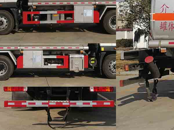 | 配置 | 1、該車適用于危險(xiǎn)品運(yùn)輸,運(yùn)送危險(xiǎn)貨物車輛類型為:FL型,類項(xiàng)號(hào):3。罐體有效容積:14.3立方米,運(yùn)輸介質(zhì):汽油,密度:700千克/立方米,罐體外形尺寸(長(zhǎng)×寬×高)(mm):5700×2150×1480。2、側(cè)、后防護(hù)材料均為Q235,螺栓連接。后防護(hù)截面尺寸120×60mm,下邊緣離地高500mm。罐體上部選裝上走道;選裝后部尾燈架樣式;選裝弧形擋泥板。3、僅采用4700mm的軸距。僅選用排氣管前置、限速裝置(限速80km/h)、前輪盤(pán)式制動(dòng)及子午線輪胎的底盤(pán);安裝帶有衛(wèi)星定位功能的行駛記錄儀;ABS系統(tǒng)型號(hào)/生產(chǎn)企業(yè)對(duì)應(yīng)關(guān)系:ABS-E/威伯科汽車**系統(tǒng)(**)有限公司;ABS/ASR-24V-4S/4M/東科克諾爾商用車制動(dòng)系統(tǒng)(十堰)有限公司;CM4XL-4S/4M/廣州瑞立科密汽車電子股份有限公司;3550D-1010/東科克諾爾商用車制動(dòng)系統(tǒng)(十堰)有限公司.采用的發(fā)動(dòng)機(jī)與油耗值(L/100Km)對(duì)應(yīng)關(guān)系為:F4.5NS6B220/24.4,B6.2NS6B210/26。該車轉(zhuǎn)向輪安裝輪胎爆胎應(yīng)急防護(hù)裝置,后軸采用空氣懸架。 | ||