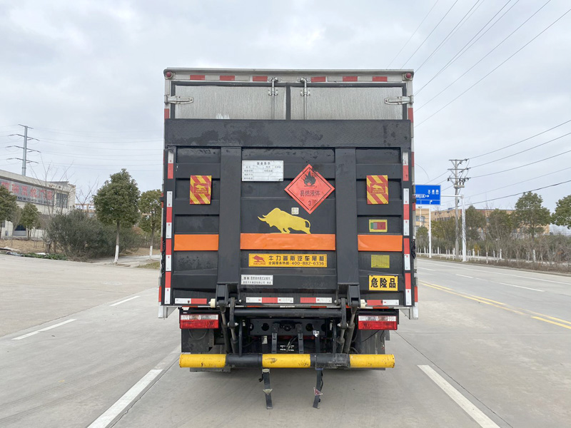 | 其它: | 1、該車適用于運輸危險品,運輸具有獨立容器(瓶)包裝的物品,運送危險物品類項號:3。廂體頂部封閉,不可開啟。2、側(cè)、后防護材料均為Q235,螺栓連接,后防護截面尺寸(mm)φ125,下邊緣離地高460mm。選裝后部無尾板,選裝后部無尾板時后防護材料為Q235,焊接,截面尺寸(mm)100×50,下邊緣離地高460mm。3、僅選用排氣管前置、限速裝置(限速80km/h)、前輪盤式制動及子午線輪胎的底盤,轉(zhuǎn)向輪安裝輪胎爆胎應急防護裝置。安裝帶有衛(wèi)星定位功能的行駛記錄儀。ABS系統(tǒng)控制器型號/生產(chǎn)廠家: ABS/ASR-24V-4S/4M/襄陽東風隆誠機械有限責任公司。發(fā)動機/油耗值(L/100km)對應關系為: ZD30D16-6N/17.2,YCY24140-60/16.5, NV30-C6G/17.3, CY4SK261/17.4, YCY30165-60/17.5, CY4BK361/17.9。選裝ETC。隨底盤選裝駕駛室。廂體側(cè)面選裝開門型式及位置,選裝不帶側(cè)開門,選裝廂體樣式,廂體側(cè)面板選裝開百葉窗。僅采用軸距3308mm。尾板收起狀態(tài)水平長度為290mm,尾板質(zhì)量為420kg。 | ||