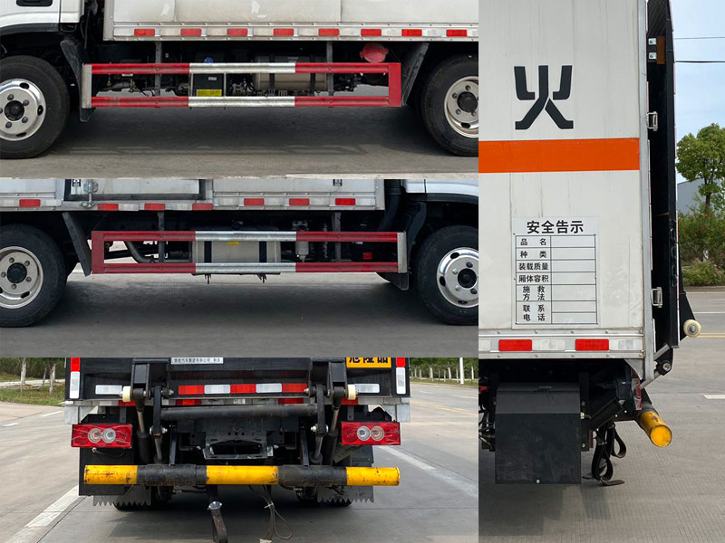 | 其它: | 1、該車為危險品運輸車,運輸具有獨立容器(瓶)包裝的物品,運送危險物品類項號:9。廂體頂部封閉,不可開啟。2、側、后防護材料均為Q235,螺栓連接,后防護截面尺寸(mm)Φ100,下邊緣離地高390mm。選裝后部無尾板時,后防護材料為Q235,螺栓連接,截面尺寸(mm)120×60,下邊緣離地高400mm。尾板收起狀態(tài)水平長度為280mm,尾板質量為350kg。3、整備質量含備胎,滅火器及隨車工具;貨廂重量為1050kg;材質/厚度:復合板結構廂體:底板材質為Q235,厚度4mm,側板為外Q235+中間阻燃泡沫+內純鋁板,厚度42mm;瓦楞板結構廂體:底板材質為Q235,厚度4mm,側板為Q235,厚度1.5mm。4、僅選用排氣管前置、限速裝置(限速80km/h)、前輪盤式制動及子午線輪胎的底盤,轉向輪安裝輪胎爆胎應急防護裝置。安裝帶有衛(wèi)星定位功能的行駛記錄儀。ABS系統(tǒng)控制器型號/生產企業(yè): :YF8/武漢元豐汽車電控系統(tǒng)有限公司,ABS-E/威伯科汽車控制系統(tǒng)(中國)有限公司,ABS-VI·E/廣州瑞立科密汽車電子股份有限公司,YF9/武漢元豐汽車電控系統(tǒng)有限公司。發(fā)動機/油耗值(L/100km)對應關系為: D20TCIF2/11.22,D25TCIF1/11.16, D20TCIF1/11.22。僅選用3360mm軸距,選裝ETC。廂體側面選裝開門型式及位置,選裝不帶側開門,選裝瓦楞板結構;廂體前后及側面選裝開百葉窗,選裝后尾板樣式,選裝無后尾板。 |