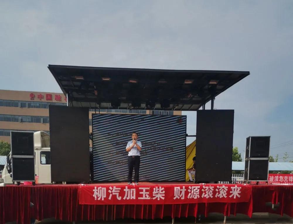 烈日下美女們火辣辣的開場舞之后湖北加貝的代表賀總和楚勝集團的代表董總分別上臺講話,對此次活動的舉辦以及乘龍L3“龍騰天下”灑水車的上市表示大力的支持和美好的愿景!