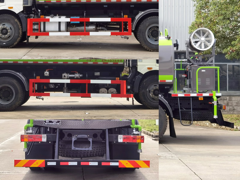 其它:1、該車用于路面灑水及園林綠化,主要專用裝置為噴灑總成.罐體總?cè)萘?10.8立方米,罐體有效容積:10.3立方米.罐體外形尺寸(長×長軸×短軸)(mm):4250×2400×1450.2、側(cè)、后防護(hù)材料均為Q235,螺栓連接,后防護(hù)截面尺寸130×60mm,下邊緣離地高435mm.3、隨底盤選裝前圍和燈具,選裝寬體保險(xiǎn)杠腳踏板.ABS型號(hào)/廠家:CM4XL/長春瑞立科密汽車電子有限公司.僅選用軸距4500mm.整車外形尺寸長/前伸量對(duì)應(yīng)關(guān)系為(mm):8640/650,7990/0.選裝駕駛室前部無自動(dòng)水炮,選裝后部不帶霧炮結(jié)構(gòu).隨底盤裝備限速裝置,限速89km/h.