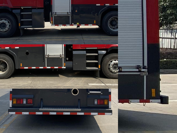| 其它: | 罐體總?cè)莘e為6.600立方米,水罐尺寸:2390×2400×1200mm。整體式側(cè)防護(hù)結(jié)構(gòu),后防護(hù)裝置材料:Q235A,截面尺寸:100×120mm,與車輛連接方式:螺栓連接,后防護(hù)離地高度:398mm,ABS生產(chǎn)企業(yè)為浙江亞太機(jī)電股份有限公司,型號為APG3550500H1。主要專用裝置有消防泵、消防炮。 | ||